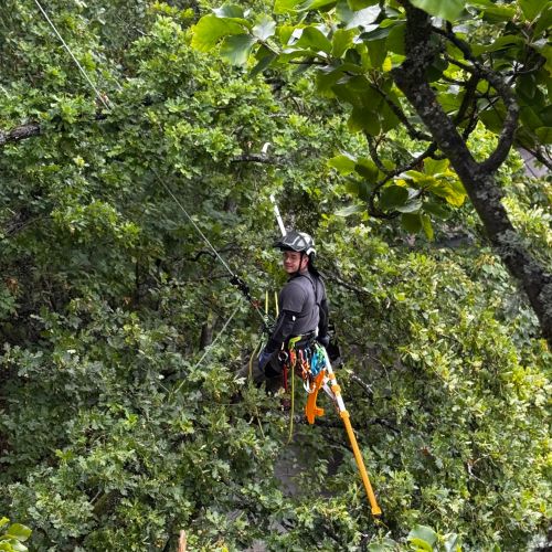 Bei statischen Schwächen, Zwieselbildungen oder erhöhten Lastsituationen setzen wir dynamische oder statische Kronensicherungen ein. Diese Maßnahmen dienen der Risikominimierung und dem Erhalt wertvoller Bäume, ohne deren natürliche Bewegung unnötig einzuschränken.